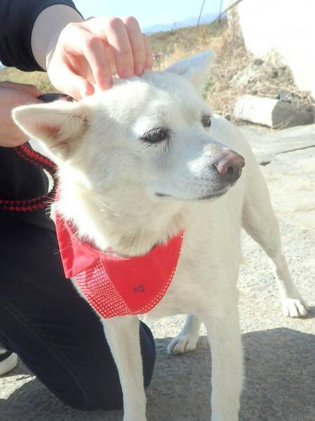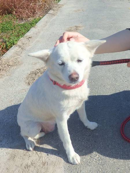 | 特徴(性格など) | 12キロの白ミックスの女の子です。普段は大人しい優しい仔ですが、人がいないと寂しいのかいたずらをすることがあります。 お散歩は引っ張ることなく、行きやすいです。時々、じぃ~とどこか悲し気な顔で見つめてきます。とっても愛らしいうららちゃんに会いに来てください。 |