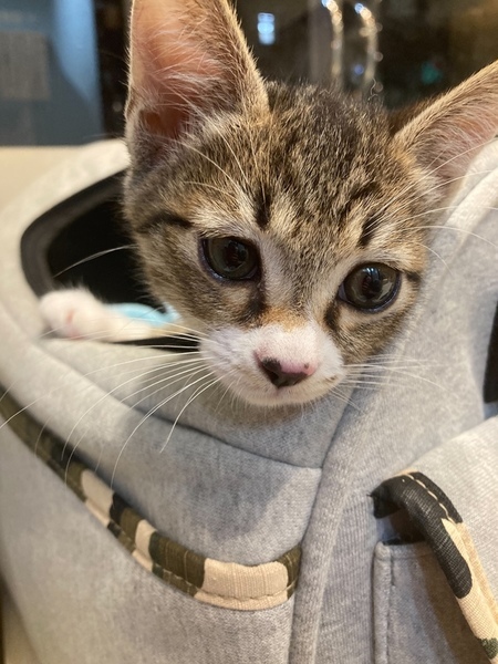 | 特徴(性格など) | お膝の上、大好き♡いつもゴロゴロ「鯖」ちゃん♡ 抱っこ大好き♪お名前呼ぶと、しっかり見つめ返してくれる甘えっコ♪ 現在、ドライフードを置き餌として栄養補給、水分補給のため一日2回パウチなど与えています。 <推定誕生日:8月末> |