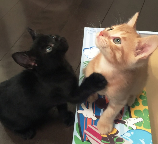 | 特徴(性格など) | 代理投稿です 条件に合った方からのご連絡をいただいた後のやりとりは、保護主に引き継がせていただきます 2匹一緒に行けるお家を優先します 生後約1ヶ月半強 ミルクから人が育てているので人馴れ抜群、ほっておくとすぐに人の膝に乗ってきます 茶トラ、♂クリス君、活発にはしゃぎ回ってます 子ライオンのようなお顔だち 黒、♂ノエル君、クリスよりは大人しい? 黒豹のようなつぶらな瞳、尻尾がほぼ無くておしりまん丸なのが高ポイント 目にも止まらぬスピードで2匹一緒に遊びまわってます ネコ科らしい顔つきに、スラリとした長〜い手足、将来有望です |