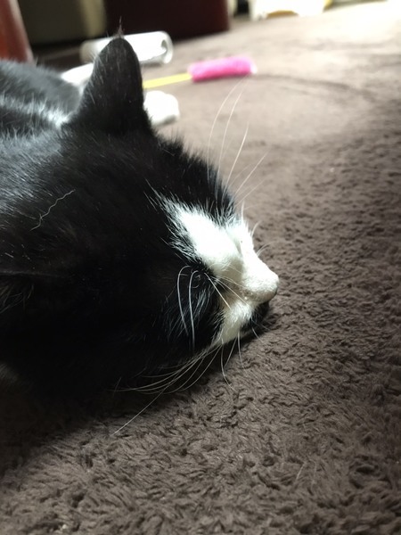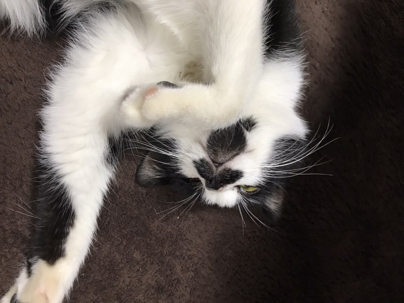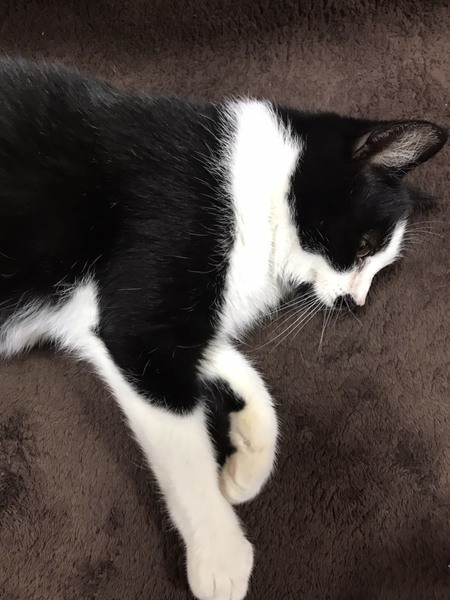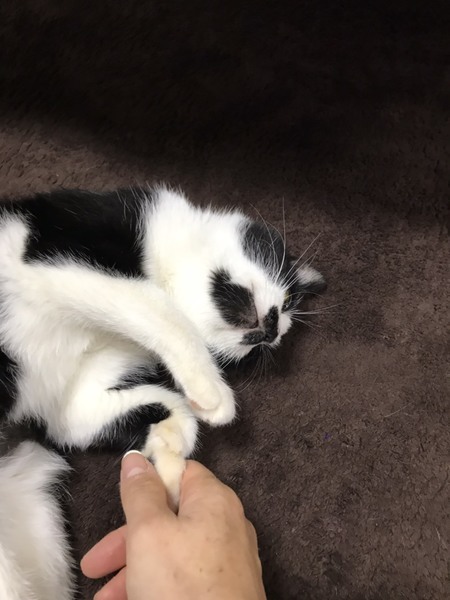 | 特徴(性格など) | 女の子のシロクロちゃん、人の側で寝たがるほどの甘えん坊です。食欲旺盛で食べてすぐ寝るところはとても可愛いです。先住猫ちゃんともよく遊びます。一人遊びも大好きでおもちゃで飽きるまで遊んでます。 | ||