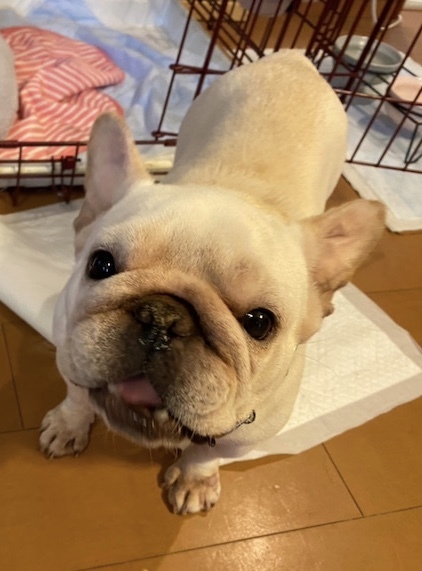 | 特徴(性格など) | ■特徴(仮の名前:おもち) フレンチブルドッグ♀ 推定6-7歳 体重8.4キロ ■性格・暮らし ・社会経験がなくビビりです。 ・マイペースで穏やかな性格です。 ・おトイレ・お散歩は練習中です。 ・ケージでお留守番・就寝ができます。 ・他犬、人に攻撃性はありません。 ■今までに行った医療行為 ・避妊手術 ・フィラリア抗原検査(ー) ・血液検査 ・混合ワクチン接種 ・マイクロチップ装着 ・検便 ・歯石除去、抜歯 ・イボ(3ヶ所)切除 |