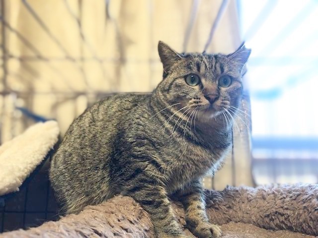 | 特徴(性格など) | キジ柄の女の子です。 体重は4キロ強あります。 シッポが短く耳にはVカットが入ってます。 自己主張が少し強い子です。 写真はまだ怖がった表情ですが落ち着いてくれば穏やかな表情も見れると思います。 保護して下さった方が、人馴れしてくれるように毎日お世話してくれています。 是非チャーリーちゃんに会いに来て下さい。 |