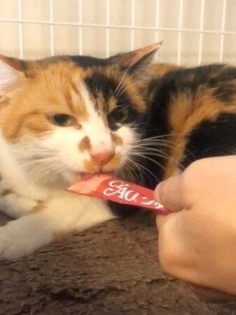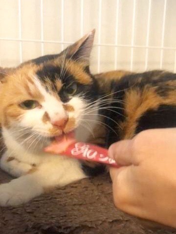 | 特徴(性格など) | 三毛猫の女の子です。 ベレーくんとは兄妹です。 シッポが短く折れ曲がっていて不思議な形をしています。 耳にはVカットが入ってます。 チュールをあげている時は触れるようになりました。 懐いてきています。 色々な性格の猫ちゃんがいてますが、それも個性でとてもかわいいですよ ミミちゃん、チャーリーちゃん、ベレーくんは3匹一緒に餌やりさんが預かっており毎日懐いてくれるようにお世話してくれています。 是非会いに来て下さい。 |