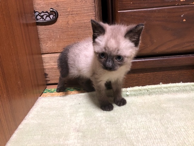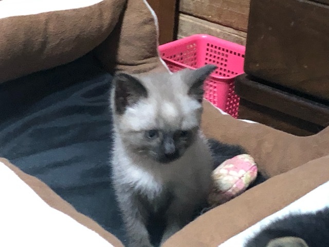 | 特徴(性格など) | ☆☆☆ご希望の方は、以下のアンケートフォームにご記入の上、送信してください☆☆☆ ねこ親希望アンケート→ http://chibawan.net/contactform_cat 【猫No】3209 【愛称】チョコ 【性別】オス 【年齢】約2ヶ月(20/09/23頃生)(20/11/24現在) 【毛色】灰白(シャムMIX) 【体重】0.8kg 【状態】ワクチン接種済(20/10/26)、去勢手術未、マイクロチップ装着未、血液検査済(エイズ−・白血病−)、駆虫済、ノミダニ駆除済、トイレ躾済 【預かり場所】横浜市 【日記】https://wannyan2.blog.ss-blog.jp/ ワンニャン生活 【経緯】横浜市動物愛護センターよりの引出し(飼主持込の猫) 【性格】甘えん坊な元気な男の子。 【補足事項】賑やかなご家庭でなるべくならお留守番の少ないご家族さまを希望します。現在一緒に暮らしている茶白猫の心くん(7ヶ月)、黒白猫の蓮音くん(5ヶ月)と凄く仲がいいので出来ればどちらかと2匹一緒を希望しています。先住猫がいても全然大丈夫。 【その他】愛情いっぱいの終生飼養、猫に合った生活スタイル、完全室内飼育、定期的なワクチン接種等健康管理をお約束頂ける神奈川県近郊のご家庭でアンケートに快くお答えいただける方からのお問い合わせをお待ちしています。 大変申し訳ありませんが単身の方、同棲カップルの方、高齢者(60歳以上)の方のお申し込みにつきましてはお断りさせて頂く場合がありますのでご了承の程よろしくお願いします。 |