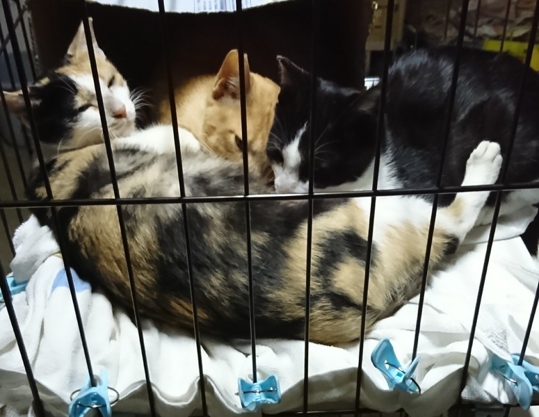 | 特徴(性格など) | 三毛のお母さんです。 子猫がご飯を食べ終わるまで待って、その後で、自分が食べます。優しいお母さんです。 エイズ陰性。白血病陰性。便の検査済。ノミダニ駆虫済。 今も子猫におっぱいをあげていて、その様子はとても癒されますよ。 |