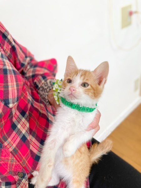 | 特徴(性格など) | 茶白柄の男の子です。 11/26現在体重は780g。 兄妹一緒で毎日遊んでいます。 是非一度見に来て頂き可愛らしい姿を見て下さい。 写真撮影の時は少し風邪症状で目がショボショボしていますが病院で治療してもらってます。 |