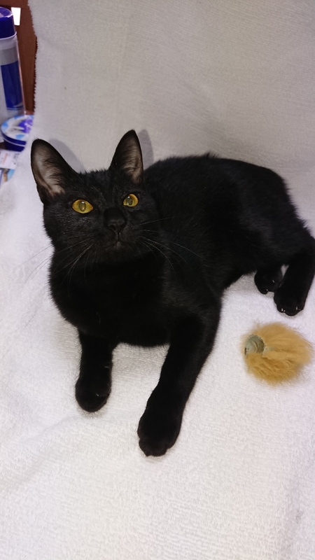 | 特徴(性格など) | 現在生後約8ヶ月です。生後約6ヶ月頃に保護し、2ヶ月経過し、人間にも慣れました。基本おとなしい性格です。足元にやってきて足の甲に頭を乗せてゴロっと寝転がります。ゴハンもよく食べてネズミのおもちゃで走り回って遊んでいます。 | ||