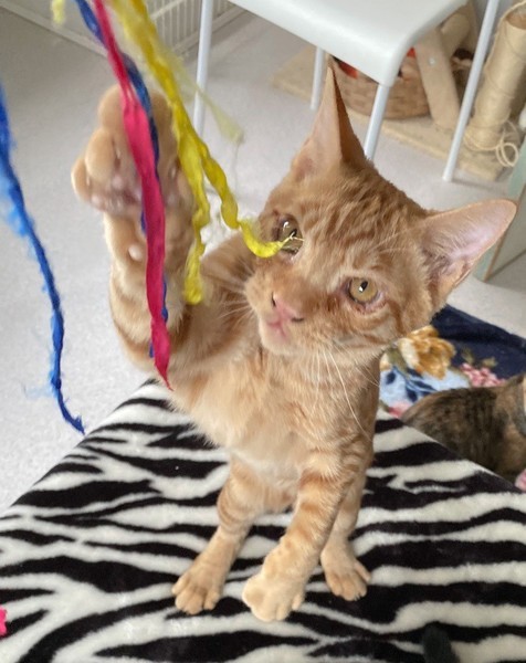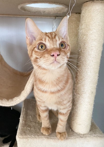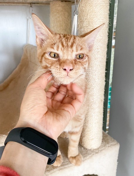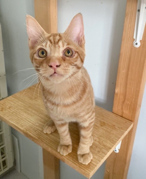 | 特徴(性格など) | 好奇心旺盛なベタベタ甘えん坊「プール」くん♡ 小さな時から人の手で育てられたので、天真爛漫の塊、元気いっぱい♪ 目風邪後遺症で片目、少し奇形となりましたが、日常生活に支障ありません。 現在、ドライフードを置き餌として栄養補給、水分補給のため一日2回パウチなど与えています。 <推定誕生日:7月始め> |