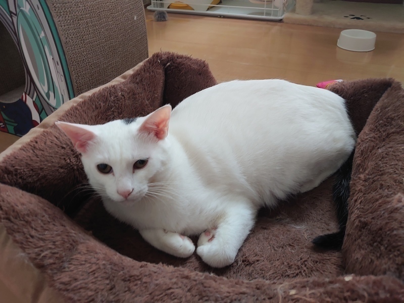 | 特徴(性格など) | フルートくん推定3歳 ○しっぽと頭のワンポイントが黒ととてもかわいい♪ ○オッドアイまでではありませんが、目の色は左右少し違います ○エイズ、白血病は陰性(潜伏期間後の再検査済み) 〇検便OK ○ノミダニ駆除済 ○トイレしつけ済 〇去勢手術済み(耳カットあり) 〇3種混合ワクチン済(2020/11/20, 2021/11/22 〇家猫訓練中です。ちゅーるやおやつは手から食べてくれますし、夜から朝方にかけてにおやつなしでも甘えるようになり、なでるとゴロゴロ言い始めました。しかし、急に我に返りシャーすることもあります。 おもちゃやおやつは大好きですので、徐々に慣れていくと願いますが、まだ完全にスリスリゴロゴロという状態ではありません。 ○マイクロチップ済 〇ヴァイオリンちゃんが大好きです 〇絶賛幸せ太り中でダイエットに挑戦が必要です 〇趣味:段ボールを破壊すること(電気ケーブル要注意) |