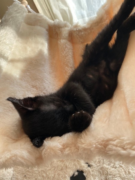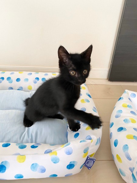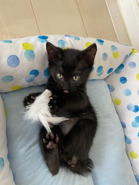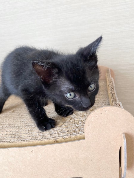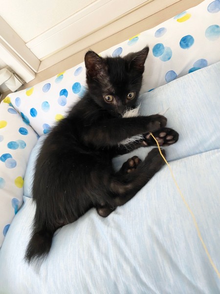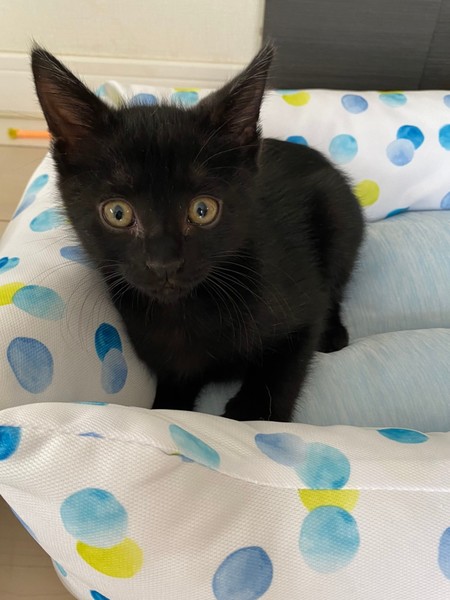 | 特徴(性格など) | 2020.9.20生まれ(推定) 毛色:黒 しっぽが短く熊の赤ちゃんのような黒猫の男の子。 活発で甘えん坊、人が座っているとすぐひざに乗ってきます♡ ごはんも大好き、毎日兄妹で走り回って遊んでいます。 |