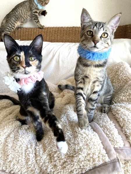 | 特徴(性格など) | ★★★東京・東銀座★猫の譲渡会★駅チカ2分東劇隣り★★★ 子猫ちゃん〜成猫ちゃんまで参加します ※掲載の猫ちゃんとのお見合いは譲渡会場になります。 事前のご予約は必要ございませんので当日会場へお越しくださいませ。 ◇会場のご案内・開催日時等、詳しくは下記をご覧ください。 猫の未来とびらホームページ http://nekonomiraitobira.com/ ★☆★「猫の未来とびら」譲渡会参加予定の猫ちゃんになります★☆★ ◇仮名◇ピカちゃん ◇毛色◇三毛 ◇性別◇メス ◇性格◇ 芸術的な三毛柄の女の子。同じ月齢の仔猫たちと走り回り、遊ぶのが好きな活発な子です。他の仔猫に優しく、人懐こく、性格の良い子でもあります。そしておしゃべりです(笑)。離乳期に風邪が重症化して入院、その後遺症で左目が少し小さく、点眼薬を継続しています。仲良しの兄猫レオと一緒のご縁があると嬉しいです。 健康状態 良好 ◇蚤取り 済 ◇検便 2回済 ◇駆虫 2回済 ◇ワクチン接種 2回済 ◇ウイルス検査 陰性 ◇避妊/去勢手術 済 譲渡会に参加予定の猫ちゃん一覧 http://nekonomiraitobira.com/archives/category/next |