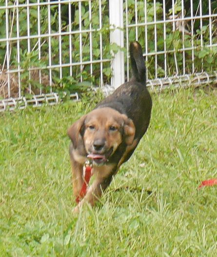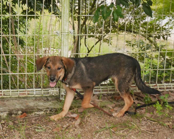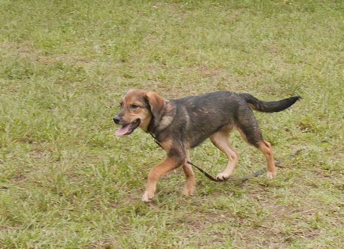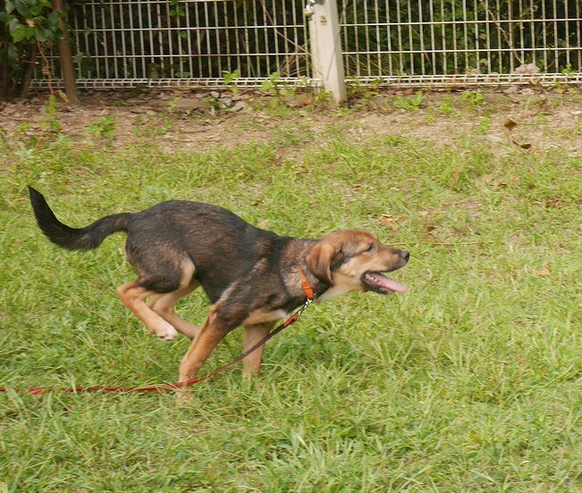 | 特徴(性格など) | 体は黒っぽい毛色で、顔や脚は茶色です。 少し怖がりなところはありますが、ドッグランでは元気に走り回っています。 走ることが大好きな活発な女の子です。 |