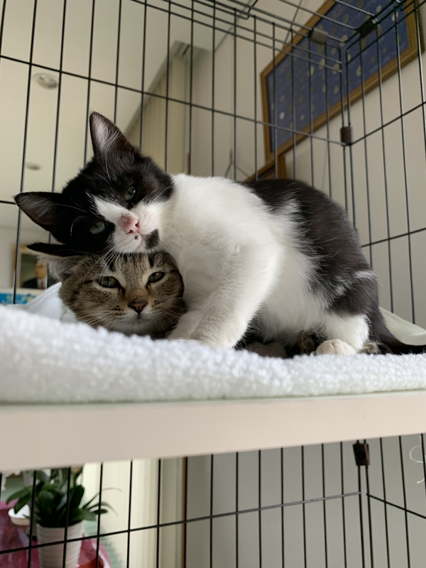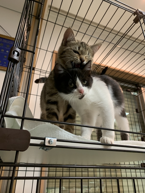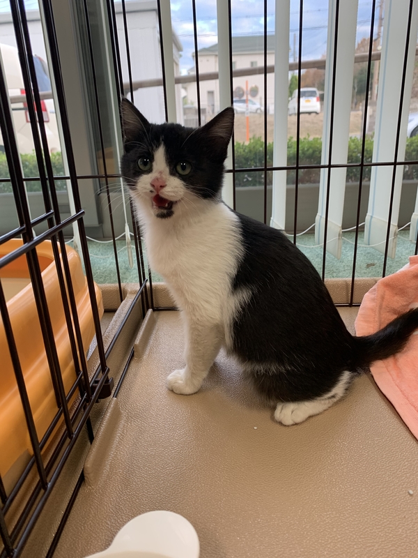 | 特徴(性格など) | ①キジトラ こげ茶 ♀ 推定4か月ぐらい 整ったお顔、初めは警戒していたが甘えるようになってきた ②ハチワレ 白黒 ♀ 推定4か月ぐらい やんちゃ甘えん坊 色柄体格に違いはありますが、一緒にいたことからおそらく姉妹 とても信頼し合っている様子 相性抜群 ●捨てられ間もなく保護に至ったためか、体もキレイで目ヤニもなく、 体重もしっかりありました。 ●獣医さんに診ていただきましたが、健康状態は良好だということです。 ●人馴れしています。 |