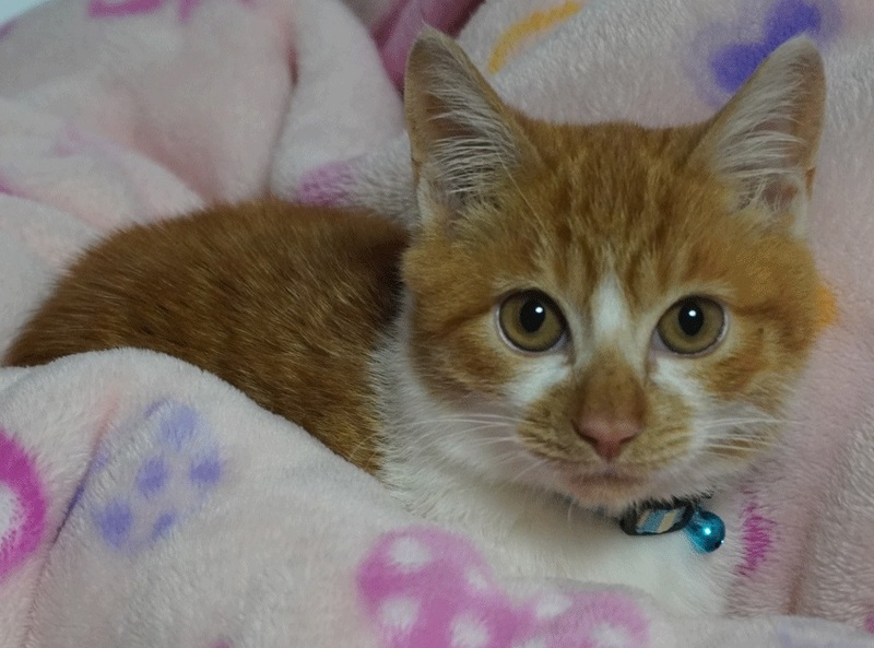 | 特徴(性格など) | 4か月位の茶白の男の子 とても元気が良い子です。なでるとゴロゴロいいます。兄弟のなかで一番早く人馴れしました。 猫エイズ、猫白血病ともに陰性 予防接種一回済み 検便駆虫済み |