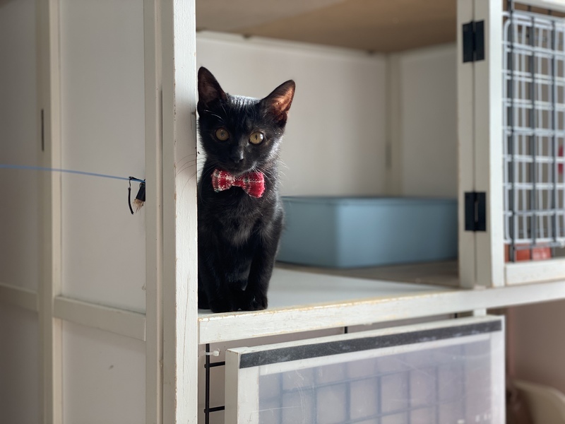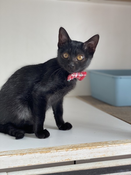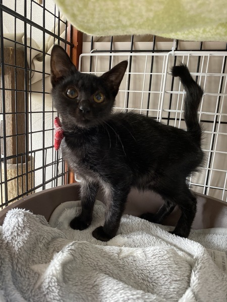 | 特徴(性格など) | 毛色は真っ暗 穏やかで控えめな性格です。 撫でると喉をゴロゴロ鳴らしてお尻をぷりーんとあげて喜びます。 現在募集中のカルビくんとも仲良しなので 2匹セットも大歓迎です。 健康状態は フードもよく食べウンチの状態も良好です。 エイズ白血共に陰性 ワクチン1回目接種済み ノミダニ駆虫済み |