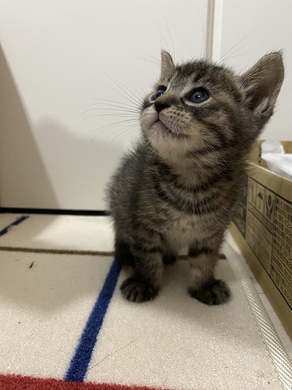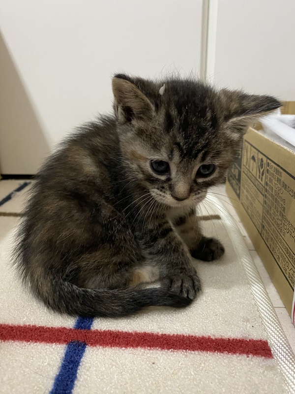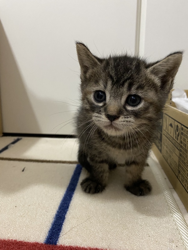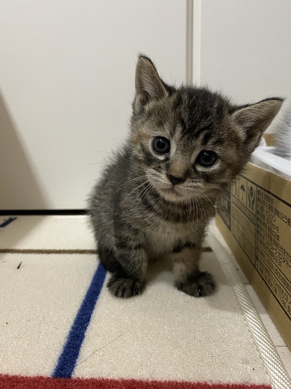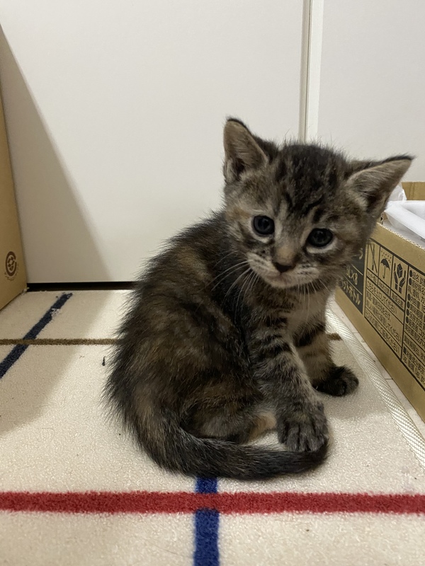 | 特徴(性格など) | 背中はサビ柄でお腹は虎柄の ちょっぴり変わった子猫ちゃん。 |