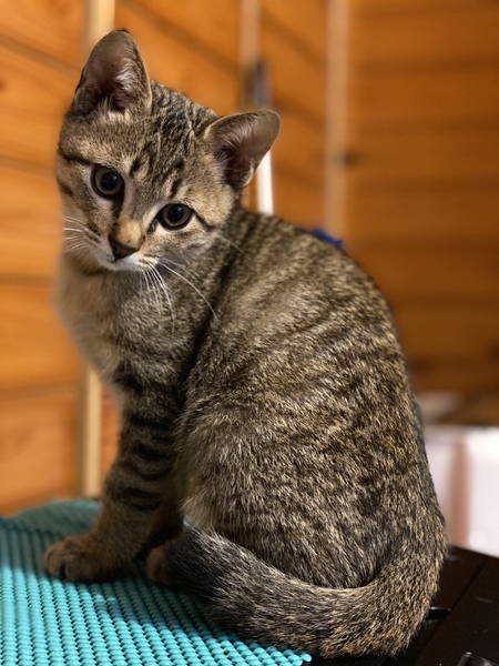 | 特徴(性格など) | エイズ、白血病検査は陰性で健康です。 ノミダニ駆除済み。 ご飯もよく食べます(カリカリも食べれます。) 他の仔猫に比べ、とても運動神経が発達してい仔猫ちゃんだと思います。 ネズミなどの一人遊びもよくしますが、猫じゃらしなどで動かしてあげると なお喜びます。 こんなに小さいのに野良で生きてきた時間が長いのか、何でも食べくれます。 と同時に、デメリットはゴミ箱を漁る癖があります。(時間が経てばなくなっていくとは思いますが) それと、保護して1ヵ月ですが、野良生活が癖がぬけないのか警戒心がまだ少しあります。 人馴れさせるところからの譲渡になると思います。 (日々、少しずつ慣れてきてはいます) |