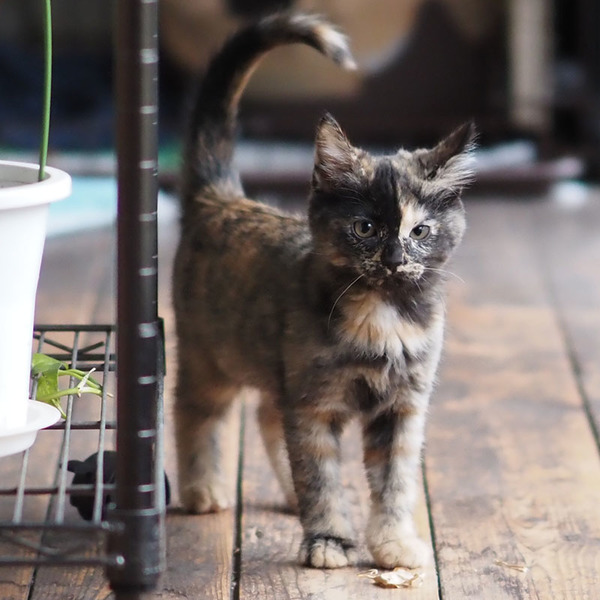 | 特徴(性格など) | 今のところ、人前では大人しめの子です。 ただ、もう一匹とじゃれ合っている時は、とても元気よくしています。 |