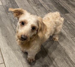 | 特徴(性格など) | ■特徴(仮の名前:ガム) ダックスMIX♂ 推定3歳 体重5.5キロ ■性格・暮らし ・少し怖がりなところがありますが、慣れれば甘えん坊さんです。 ・トイレは室内トイレシート練習中です。 ・お散歩は好きですがもう少し練習が必要です。 ・トリミングが必要な犬種です。月に一度のお手入れをお願いします。 ・家の中を走り回ったり、テーブルに乗ったり、とても元気いっぱいです。 ・ケージインでのお留守番・就寝できますが吠えてしまうことがあります。 ■今までに行った医療行為 ・去勢手術(10/27) ・狂犬病予防接種(10/27) ・血液検査(11/24) ・1回目5種混合ワクチン(11/24) ・マイクロチップ(11/24) ・検便(-)(11/24) ■今後行う予定の医療行為 なし |