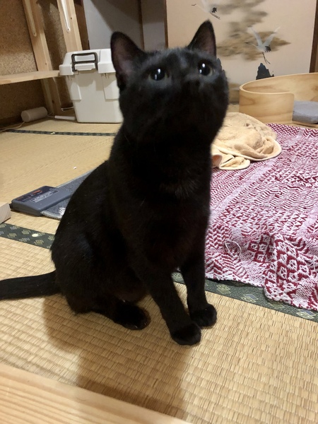 | 特徴(性格など) | 毛色 真っ黒 瞳 黄色 触ったり撫でたりはできません。 現在、もっと人馴れできるように練習中です。 ですが、おもちゃで遊んでもらうのは大好き!!! 隠れているおもちゃを捕まえたり、飛んでいるのをジャンプして捕まえたり! ダッシュで追いかけて、たまに勢い余ってぶつかって来てくれます。 ご飯の際、どこで間違えたのか催促する時に、ニャーではなく、シャーをします。 決して怒ってはいません。 とても可愛いシャーなので、それが聞けるといい事がある気がします。 また、かなりの美人さん!! 幼さが残る、綺麗な顔立ちをしています。 小柄で運動神経も抜群。 実はかなり好奇心旺盛です。 過去に虐待、遺棄された経緯があるためか、環境や人に慣れるまでは、威嚇をすると思います。 近付いたり、急な動きをすると、敏感に反応してしまいます。警戒体勢になりますが、慣れてくるととても可愛らしい表情をします。 当初から比べると、ここまで穏やかな表情をするようになりました。(画像6参照) とても自立しているので、一人暮らしの方や留守の時間が長めの方でも、安心してお留守番を任せられると思います。 近くに他の猫達が寄ってきても威嚇する事はないので、人間は苦手でも猫は平気です。 安心できる距離を守ってあげると少しずつ懐いてくれて、もっと個性が出てくると思います。 そんな成長過程が楽しみな方、お待ちしています! |
