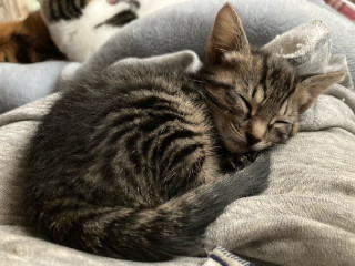 | 特徴(性格など) | ☆★☆★現在お見合い予定がございます☆★☆★ 仮名を『あんず』といいます。 センター収容猫です。 活発なきじとらの女の仔です。 眠くなるとまだまだ赤ちゃん。 布団の中で寝るのが大好き。 家族になったら、あんずと一緒に寝られますよ。 なかなかの特技の持ち主で、肩にも乗ります(^^) あんずは生後0日〜生後1日という生まれたての時にひとり、センターに収容されました。 身体も濡れていて、低体温で命の危険もあったのですが、ミルクボランティアさんの愛情とお世話が、あんずを生きる道へと導いてくれました。 あんずの生命力の強さにも、驚きと喜びとの連続でした。 現在他猫とも共生し、楽しく毎日を過ごしながら、ずっとのお家、ずっと一緒の家族を探しています。 フレンドリーな先住猫さんのいらっしゃるお家や、他の仔と二頭一緒のお迎えなど大歓迎です! 【医療処置情報】これから実施のも含まれます *健康チェック *3種混合ワクチン接種 (年1回定期的にしております。詳細はお見合い時にお知らせいたします) *ウイルス検査実施(FIV.FeLV共に陰性) *検便実施 *駆虫薬投与(レボリューション、ドロンタール) *マイクロチップ装着 *不妊・去勢手術 |