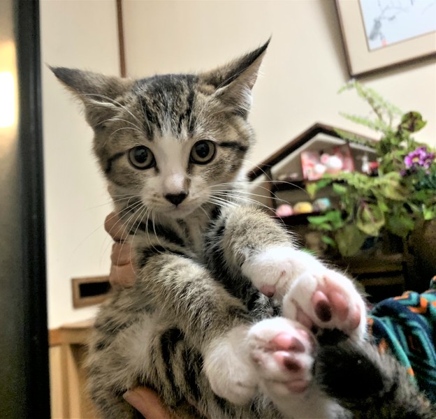 | 特徴(性格など) | ややブラウン系の綺麗なキジトラに、お顔と足に白いポイントがあります。 アイラインくっきり、黒いお鼻が可愛いです★ 他の兄弟も同様ですが、お顔のクレオパトララインやM字ラインもしっかりあります。 兄弟の中では小顔ですっきりとした顔立ちです。大きな耳とシュッとした鼻先が男の子らしい雰囲気です。 ワイルドキャットのように、耳の先にツン長い毛がでています。 おとなしく、いつも他の兄弟にぴったり寄り添っています。 尻尾は中くらいで、まっすぐ。 人にも慣れて、攻撃性はまったくありません。初対面ではちょっと臆病ですが、おとなしく触らせてくれます。 よく食べ良く眠りみんなでわちゃわちゃ遊んで過ごしております。健康状態は良好です。よく食べ良く眠りみんなでわちゃわちゃ遊んで過ごしております。健康状態は良好です。 |