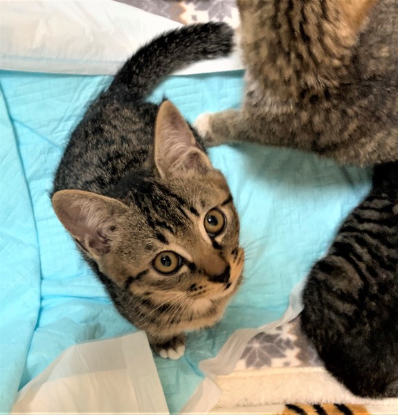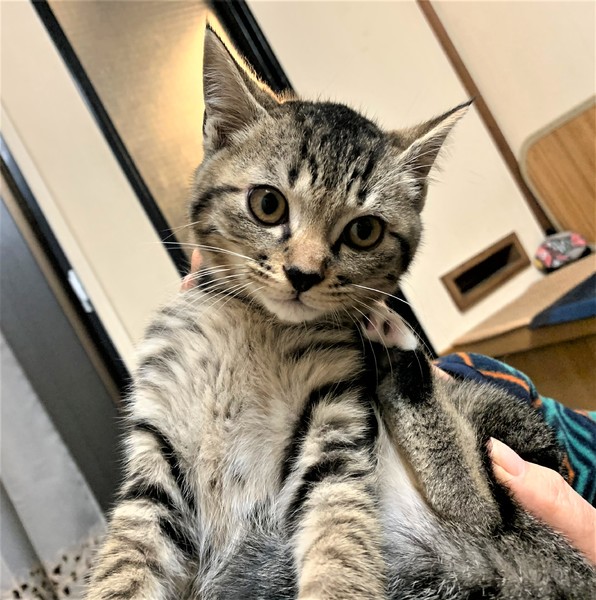 | 特徴(性格など) | くっきりとした綺麗なキジトラです。 全身しましま模様ですが、指先だけ白いマニキュアがチャームポイント! お顔のクレオパトララインやM字ラインもしっかりあります。 まん丸の目がまるでアイドルのような可愛さですが、大きな耳とシュッとした鼻先が男の子らしい雰囲気です。 ワイルドキャットのように、耳の先にツン長い毛がでています。 兄弟の中ではひときわ甘えんぼです。 尻尾は中くらいで、先が少しだけ曲がっています(長崎ならではのお曲がりネコ★) 兄弟5匹、仲が良く、いつもなめあったり重なり合って寝ています。 人にも慣れて、攻撃性はまったくありません。初対面ではちょっと臆病ですが、おとなしく触らせてくれます。 兄弟姉妹5匹の中でもかなりの甘えんぼさんです。 よく食べ良く眠りみんなでわちゃわちゃ遊んで過ごしております。健康状態は良好です。 ミルクは卒業。快食快便快眠です。 ワクチンは二度ども接種済。ワクチン費用はいただきません。小さいので避妊・去勢手術はまだです。 |