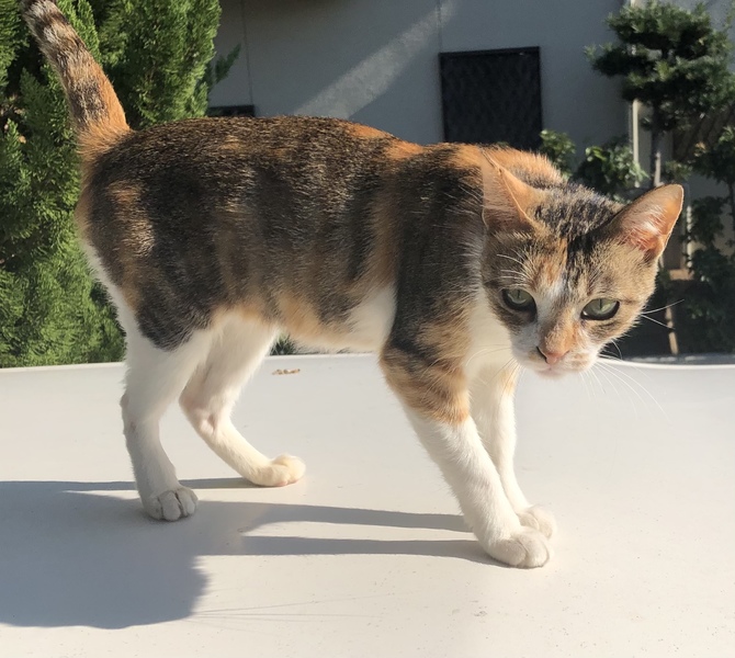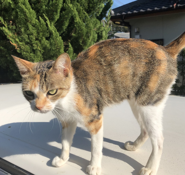 | 特徴(性格など) | 三毛 人懐っこいいい子です。 名前を呼ぶとニャーと返事しながら近寄ってきます。 |