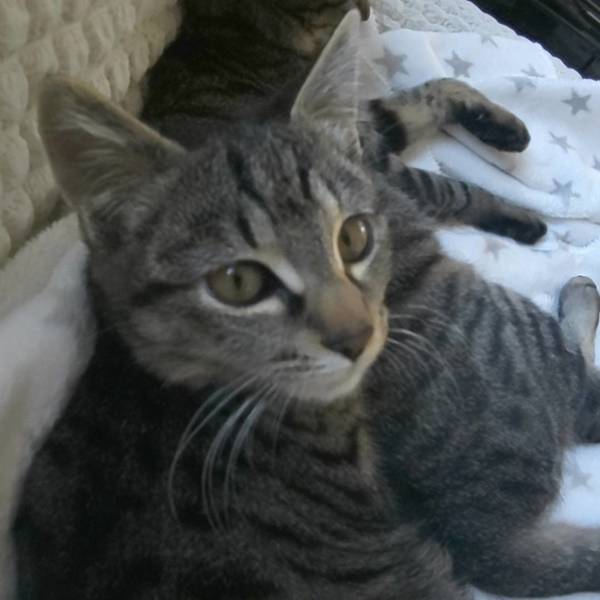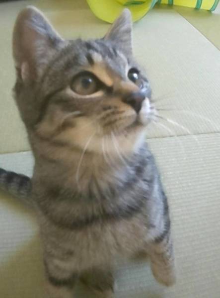 | 特徴(性格など) | 生後約4ヶ月、男の子です。 3ヶ月頃までお外でおかあさん猫と暮らしていました。人と接したことがなかったため、最初は人が怖くて仕方ありませんでした。 とてもおしゃべりさんで、考え中は「ウ~ン」、おねだりは「ニャーン」、眠いときも「ウ~ウ~」、何か喋っていることが多いです。 兄弟のまめきちくんや同居猫ピカロちゃんによく甘えている末っ子タイプです。もっと人馴れが進めば、きっと人にも甘えてくると思います。 元気いっぱいで、ごはんやおやつのときは1番のりで張り切ってやってきます。 体型はやや華奢で、キリッとした可愛い顔をしています。 まめきちくんと兄弟です |