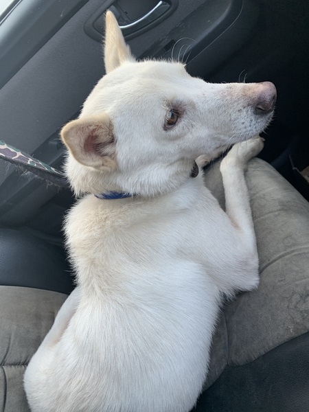 | 特徴(性格など) | 毛色→白い 性格等↓ 臆病でビビりくん。人馴れ訓練中です。人にビビりますが寂しがりやさんです。優しいお顔でお目目がクリクリしてます。 ワンちゃんが大好きで散歩中に出会うワンちゃんには尻尾フリフリと近づき上手くご挨拶できます。構って欲しい時や何かを訴える時猫の様に喉鳴らしをしますが、攻撃性はありません。 ずっと外飼いにされていた為、 トイレは外波です。 年齢は、推定年齢となりますが 3〜4歳程です。 |