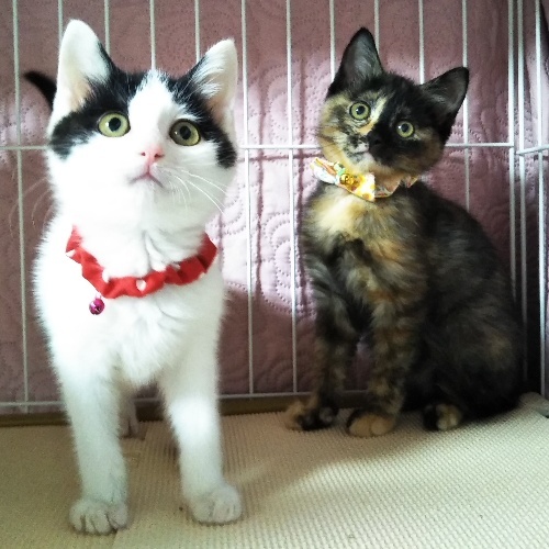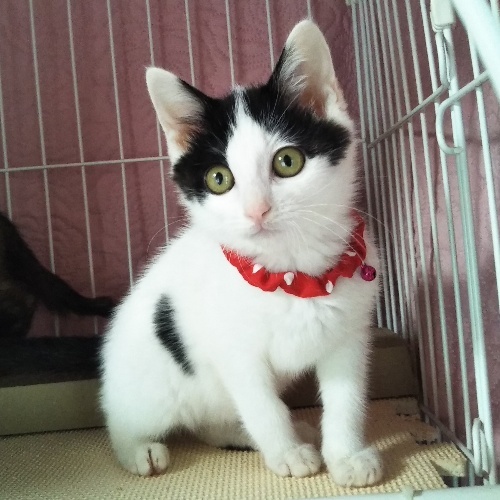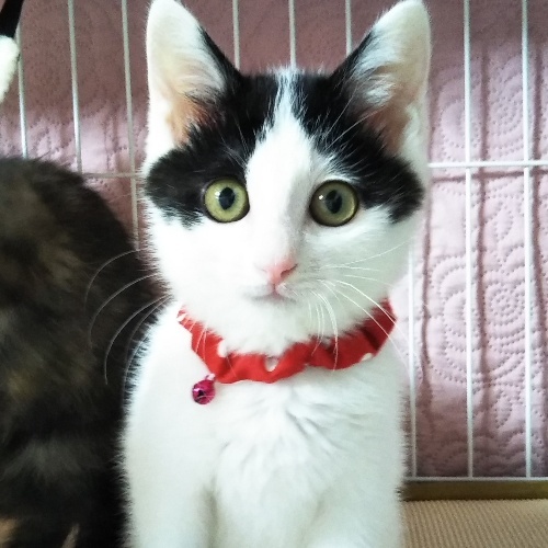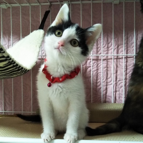 | 特徴(性格など) | 甘えん坊で、人の姿が見えただけでもずっとゴロゴロ喉を鳴らしています。好奇心旺盛て物怖じせず、初対面でもすぐになつきます! 遊ぶのも食べるのもいつも全力投球、元気なこです。サビ柄のくるみちゃんと兄弟で、とっても仲良しさんです! |