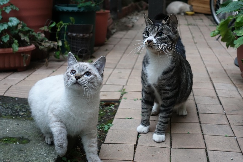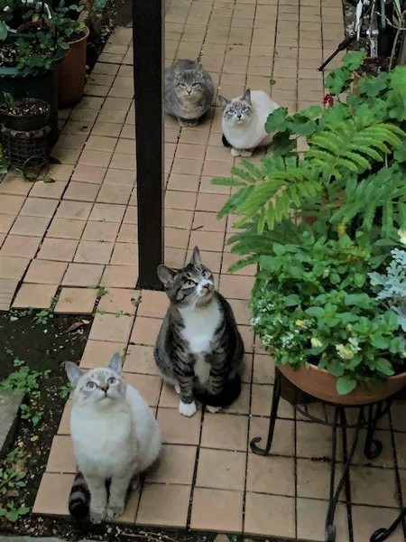 | 里親募集する理由 | 我が家の庭に半年以上ご飯を食べにくる母猫ちゃんが、2か月ほど前から3匹の子猫を連れてくるようになりました。 白猫ちゃん2匹、グレー1匹です(写真をご参照ください) 我が家には去勢していないオスの老猫がいるため、飼いたいのですが飼うのが難しい状況です。 兄弟3匹、親猫ともいつも一緒に行動しているのでぜひ一緒に飼ってくださる方がいたらとてもうれしいです。 |