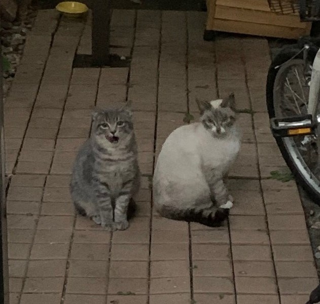 | 里親募集する理由 | 我が家の庭に半年以上ご飯を食べにくる母猫ちゃんが、2か月ほど前から3匹の子猫を連れてくるようになりました。 白猫ちゃん2匹、グレー1匹です(写真をご参照ください) 白猫ちゃん1匹はご家族がほぼ確定しています。 我が家には去勢していないオスの老猫がいるため、飼いたいのですが飼うのが難しい状況です。 兄弟2匹、親猫ともいつも一緒に行動しているのでぜひ一緒に飼ってくださる方がいたら、優先してお譲りしたいと思っています。 |