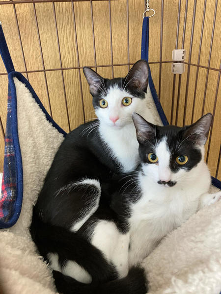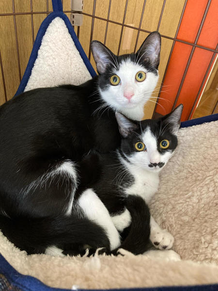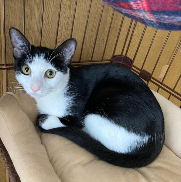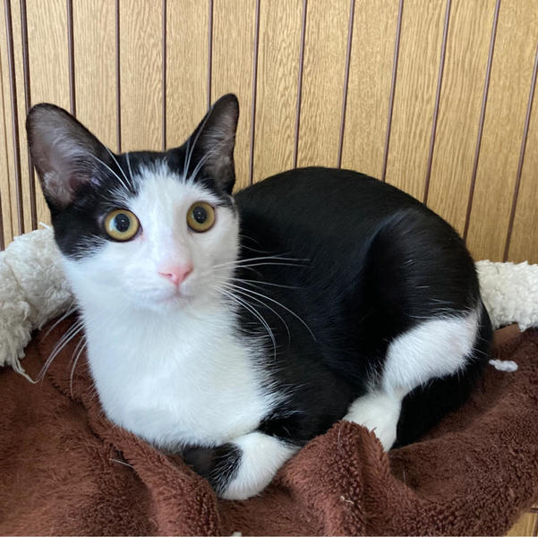 | 特徴(性格など) | 【性格】おかっぱのオンザ前髪のかわいいブイちゃんのご紹介です! 保護生活にもだいぶ慣れてきたので、もう抱っこもさせてくれます。 シャイな子で、まだ自分アピールが下手くそだけれどもすっかり家猫らしくなってきました。まだまだ子供なのでおもちゃに反応しちゃうし、ちゅ〜るは噛んじゃうほどに大好物です。 控えめですが、慣れたら無邪気に遊び回るタイプです。 とってもかわいいブイちゃんは、不器用な為になかなかご縁に恵まれません。 どうか、ブイちゃんの可愛さをわかってくださる方!よろしくお願いします! 同じ姉妹のビーちゃんと仲良しさんです。 |