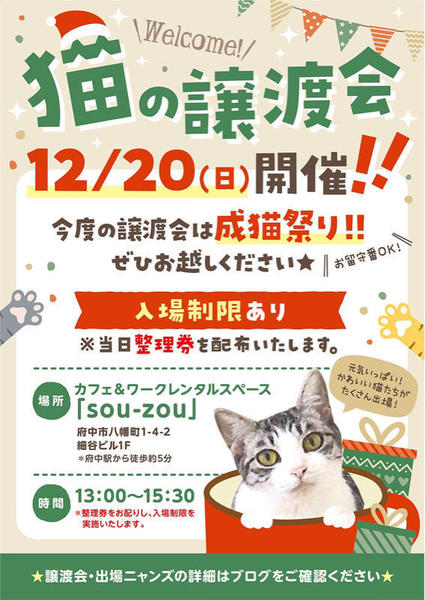 コロナ対策で蜜を避ける為にも、本気で猫ちゃんを迎えたい方々のみのご来場をよろしくお願い申し上げます。