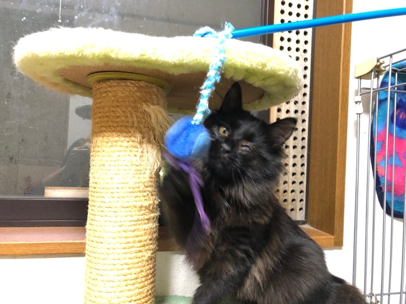 | 特徴(性格など) | 2020.8.20生まれ(推定) 毛色:黒 長毛 むくむくとした長毛で、ちょっぴり尻尾が短めのロイド君。 抱っこと膝の上が大好きな男の子です。 兄弟猫のリィンと一緒に2段ケージで仲良くお留守番も出来るお利口さん。 猫じゃらしも、ボール遊びも、追いかけっこも大好き!! 元気いっぱい、片目のハンデなんてなんのその!!なロイド君です♪ ロイドのおめめをチャームポイントと受けてとめて下さる、素敵な里親様をお待ちしています!! |