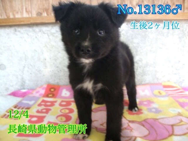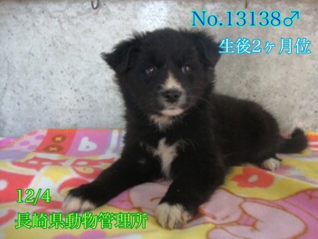 | 特徴(性格など) | まだよちよち歩きの生後2ヶ月位、可愛い雑種の仔犬、黒白男の子兄弟3匹ですฅ•ﻌ•ฅ No.13136→⭐️追記⭐️譲渡になりました! No.13137→募集中です No.13138→募集中です 現在は1日に3回、栄養価の高い仔犬用離乳食缶詰を食べています。 まだまだ幼い為、長時間のお留守番は出来ません。 健康な成長の為に良質なフードを与える事が可能な方、育てる自信と覚悟のある方、飼育経験のある方が望ましいですm(_ _)m 優しい職員さん方が怖くないよ、幸せになれます様にと毎日触れ合いながら、一生懸命にお世話してくださっています。 尻尾フリフリ人懐こく喜んで寄って来て足元にじゃれついて離れないそうです。 おもちゃで遊んだり仔犬らしさ全開(^^)愛嬌たっぷりラブリーの甘えん坊さん達です。 当分の間はかなり手がかかり大変かと思いますがまだ仔犬ですし、人間が愛情をもって接すれば、この子達はきっと徐々に新しい家庭環境にも馴染んでいけると思います♡ 広い心でドンとこい^_^と仰って頂ける方、愛くるしいこの子達をこの先もずっと尻尾フリフリ♫ニコニコの笑顔にしてくださる方、いらっしゃいませんか? どうぞ宜しくお願い申し上げますm(_ _)m ⭐️必ず室内飼育で、譲渡後速やかに病院受診、健康診断(血液検査、尿便検査、ノミダニ・フィラリア予防やシャンプー等)皮膚の治療、混合ワクチン、生後半年頃を目処に去勢手術をする事が可能なご家庭。 ⭐️まだまだ幼い為長時間のお留守番は出来ません。しばらくは1日3回に分けて食事を与える必要があります。なるべくお留守番の少ない、沢山優しくスキンシップやコミュニケーションで触れ合っていただけるご家庭。 ⭐️トイレの躾は1からとなります。まだ仔犬なので躾は入りやすいと思われます。 最初は何かと手がかかり大変ですが(マナーベルトやL字型のトイレ、ペットシートを用意など)覚悟と根気・理解で受け入れて下さる方m(_ _)m ⭐️出来れば犬の飼育経験があり自信のある方、愛情を持って接し犬をしっかり躾することが出来る方、お散歩や運動にも充分時間をあてられる方、場合によりトレーニング教室なども視野に入れて考えてくださる方。何卒宜しくお願い致します。 ⭐️大きくなっても大丈夫なご家庭。 中型〜大きめの中型犬程度に成長すると思われますฅ•ﻌ•ฅ 以上の点を踏まえ、この子が置かれている状況をご理解の上、全て受け入れ寄り添っていただけるご家庭で可愛がって頂きたいと祈っております。収容された全ての子達は身勝手な人間による被害者であり、何も悪くありません( ; ; ) 家族の一員として生涯大切にしてくださる優しいご家庭とのご縁が結ばれ幸せになれます様に♡ 幸せなクリスマス、お正月を迎えられます様に☆⭐︎ 1日も早く温かな愛情を目一杯注がれながら、元気に幸せに生きてほしいです。人間より遙かに短い生涯です。 冷たく硬いコンクリートの上、檻の中でひたすら優しい素敵な里親様を待ち続けています。 悲しい事にこの世の中、人間に飼われないと犬は生きていく事が出来ません。 捨てる飼い主、探さない飼い主、医療にかけない飼い主、虐待する飼い主…飼い主を選ぶ事も出来ません。 生まれたばかりのこれからのこの子達を、生涯大切に可愛がって下さる優しい素敵な里親様、どうかお願い致します。きっと、必ず最高の家族になります! もうこれ以上悲しい辛い目に遭わせたくありません。本当の愛情、温もりを知ってほしい、辛かった分、寂しかった分、まだまだこれからの犬生はのびのびと幸せいっぱいに愛し愛されて、生きてほしいと願っております。家族の一員に迎え、愛ある温かなお家で、これからの生涯を共に暮らして頂けませんか。 何卒宜しくお願い致します(๑•ᴗ•๑)♡ https://dog.benesse.ne.jp/lovedog/content/?id=15698 ◆健康状態 ⭐︎今のところ食欲旺盛で元気にしています。 現在は1日に3回、栄養価の高い仔犬用離乳食缶詰を与えています。 ※管理所では収容するのみ、になり、健康診断やワクチンなどは一切行っておりません。 収容動物の健康面の保証、及びトライアル制度は無い為、例えどんな病があろうとも全てを受け止め丸ごと受け入れて下さる方、終生愛情飼養して下さる方のみ への譲渡となります事をご理解、ご了承の程何卒宜しくお願い申し上げますm(_ _)m ※譲渡後は必ず速やかに病院でメディカルチェック(血液検査、便検査、ノミダニ・フィラリア予防、シャンプー、混合ワクチン等)生後半年頃を目処に不妊手術を確実にお願い致します。 ★去勢、避妊手術は長崎県動物管理所より譲渡条件の1つになりますが高齢、傷病犬であったり、何らかの疾患が見つかり治療が必要な場合には年齢・健康状態を考慮の上獣医師の判断を仰ぎ、ご報告を頂いております。 ワクチン接種も同様となります。 ★逸走、脱走にはくれぐれもご注意願いますm(_ _)m 交通事故等、命に関わります! 病院へは必ずキャリーに入れて連れて行ってください。 ★お散
