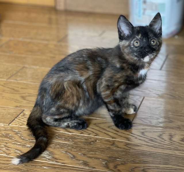 | 特徴(性格など) | 生後1カ月まで母猫に育てられたので、保護当初は逃げ隠れしていましたが、今では兄妹とはしゃぎ、抱っこするとゴロゴロ言えるようになりました。 ノミダニお腹の虫は駆虫済み。エイズ白血病血液検査陰性。3種混合ワクチン3回済み(パルボが流行っていたので幼少期に捨てワクチン1回を入れています。)。お腹も壊さずいたって健康です。 近況や そのほかの里親募集中の猫たちは 「サクラねこ名古屋」のブログで毎日御紹介させていただいております。 http://sakuranekonagoya.jp/ |
