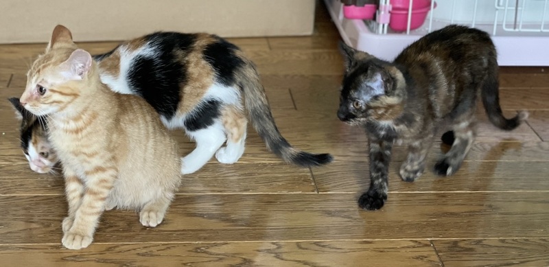 | 里親募集する理由 | 民家に母猫と生後1か月の子猫4匹が現れ保護依頼を受けました。捕獲機で5匹とも保護し、母猫は凶暴なので避妊手術後リターンしました。今もご飯を食べに来ています。 | ||