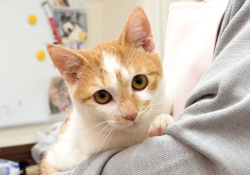 | 特徴(性格など) | 性格・特徴 まるた君♂ 7ヶ月 日本猫(茶トラ&白) 全体的に茶トラですが、かわいい裏白・はちわれ君。うなじでトラ柄がきゅっと絞れていて“∞”のようになっているところがチャームポイントです。 すらーっとしたまっすぐのしっぽ。 2020年前半生まれ(推定) 初対面の人をこわがり、威嚇もしましたが、他のどの子よりも馴れると甘えん坊さんになり、自分から膝に乗ってきてくれたり、フミフミしたりします。環境が変わり、お世話下さる方が変わればまたこわがるかと思いますが、逆にどなたに対しても気持ちが安定すれば確実になじんでくれます。里親様のお宅で早期になれるには、少しの期間、信頼構築できるまでケージ飼いするのが最も近道と思っています。ご希望があれば、ソフトケージ(たたむとぺちゃんこになります。)、小ぶりな屋根付きサークル、ペットケージ等のいずれかを婿入り道具として進呈することも可能です。 この子の行く末を案じ、去勢時、左耳にごくひかえめな「さくらカット」をほどこしてあります。 トイレ躾済み。室内の猫砂トイレにきちんと排泄できます。 健康状態 良好。 去勢手術済み。5種ワクチン済み(二回)。ノミ・ダニ予防済み。検便(-)、エイズ・白血病(-)、検診済み(著変なし)。医療管理、トイレ躾等の婿入り支度完了しています。 |