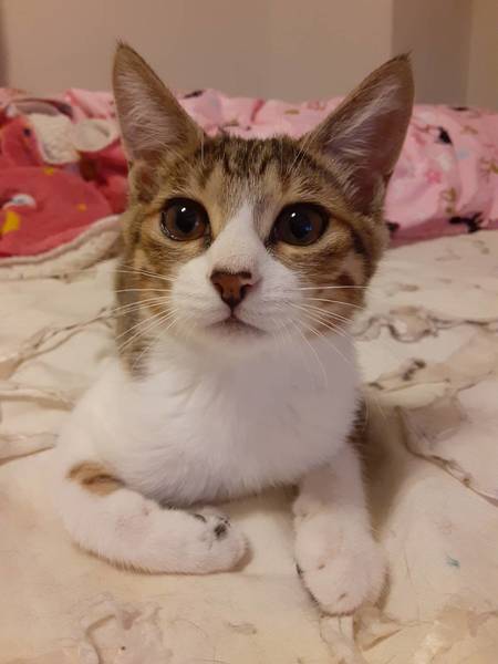 | 里親募集する理由 | 子猫3匹がお腹を空かせて鳴いている所を保護しました(2020/6/21) 他の子よりも成長が遅かったのか小さく、今でも餌皿の側に連れて行かないと食べないので痩せてます。 |