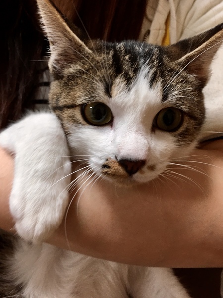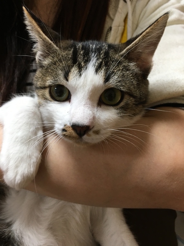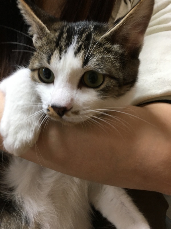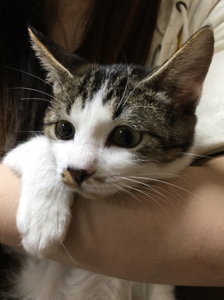 | 特徴(性格など) | 穏やかで人慣れしている白キジちゃんです。 背中の模様がアメショーのようです。 トイレの躾済み。 抱っこや撫で撫で出きます。 |