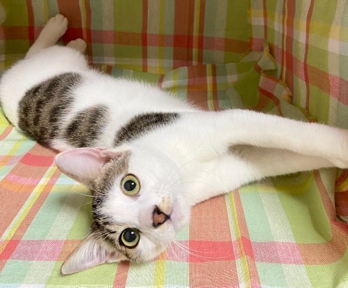 | 特徴(性格など) | 【仮名】ボーナーくん 【性格】保護している期間が長かったのもあって優しいベタ慣れにゃんこに変身しました~! 「なんやベッタベタの液体、身体にまとわりついて動けんようになっとんたんや。。。 えらい目にあったわ~!( ´Д`)=3 フゥ」 だそうです(^_^;) 気の合うことは仲良くし、そうでない子とも一緒に過ごす事の出来る協調性のある子です。 どの子も同じなのですが環境に慣れるまでは甘えたくても遠慮してしまいますので ボーナーくんのペースで見守って下さる里親様とのご縁をお待ちしています☆ ※1匹譲渡可 |
