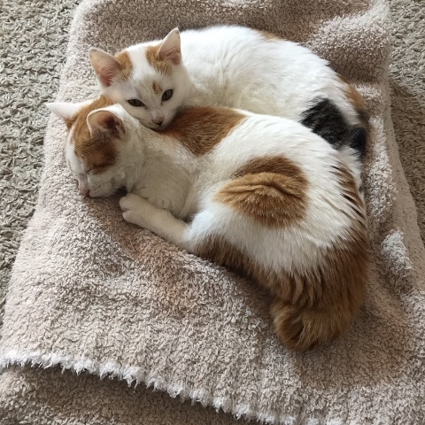 | 特徴(性格など) | おもちゃで遊ぶことも、食べることも大好きな女の子です。 性格はとっても優しく、元気いっぱい。 いつも慎重派のこうめ君のお手本となって、行動してくれています。 撫でられること、腕の中で寝ること、ふわふわの毛布の上でこうめ君と一緒に寝ることが特に大好きです。 仲良しのこうめくんと兄弟一緒に、愛情いっぱい大切にしてくださる方を募集しております。 |