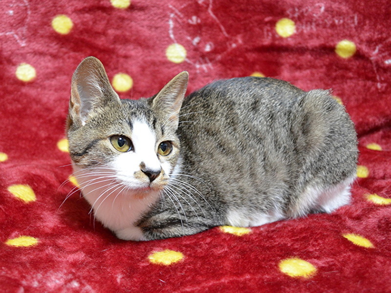| 特徴(性格など) | 【仮名】小梅ちゃん 【性格】初めて会ったその時からゴロゴロすりすり^^警戒心なく甘えて来ました。 女の子としては美にゃんこではなく泥棒顔とちょっと残念ではありますが、、、 里親さんの心を奪う泥棒にゃんこになると思います(爆) 同じくらいの猫とも元気良く走り回ったっりしています。 一緒に暮らしている同年代のお友達とのお迎えを希望しますが お留守番の少ない家庭でしたら1匹もOK!です。 ※1ピキ譲渡相談 |