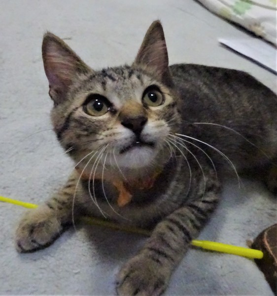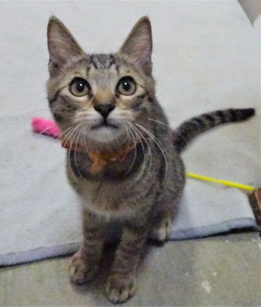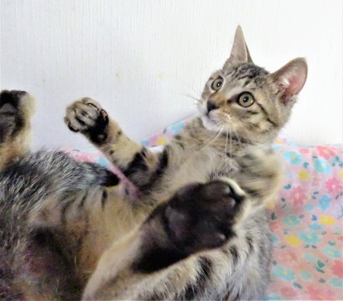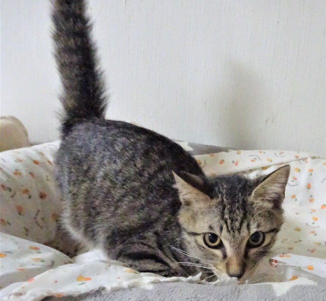 | 特徴(性格など) | 仮名: ベンくん(オス) 毛色: キジトラ、尻尾長い 性格: 少しビビリですが、威嚇なく抱っこ出来るし、爪切りや投薬も大丈夫です。 ケージから出たい時はご飯の催促の時に鳴いたりします。 元々、鳴いて見つかった子ですから、鳴いて訴えるほうです。 他猫とは上手に付合ってプロレスしたりしています。 一人遊びも好きです。 ちょっと怖がりなので、慣らすときは少し時間をかけると良いです。 馴らすためと、留守番時の安心のためにもケージをお使いになる事をお勧めします。 ノミ取り済 検便済 駆虫済 3種混合ワクチン済 猫エイズ・白血病ウィルス検査はともに陰性です。 |