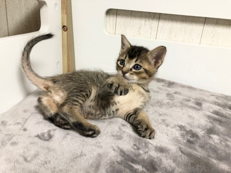 | 特徴(性格など) | 【仮名】マリ 【生年月日】推定2020/10/28 【種類】MIX 【毛色】ブラウンティックドタビー 【性別】メス 【避妊】未。適齢になり次第飼い主様で必ずお願いします。 【ワクチン】未 【駆虫】未 【血液検査】未 【健康状態】良好 【性格・特徴】お転婆で、ほかの兄妹と遊ぶのが大好き♪ アビシニアン風の毛色です。 |
