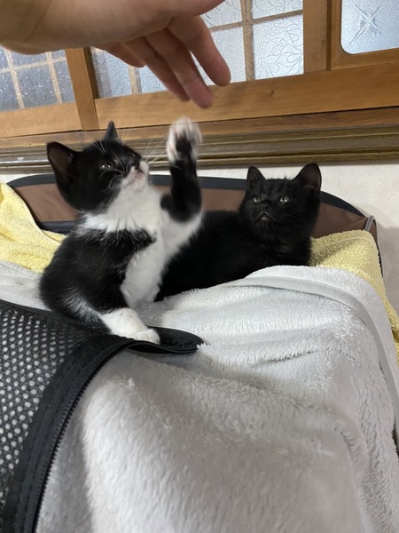 | 特徴(性格など) | 人見知りも無く、ねこちゃんにも平気な元気一杯おてんばさんです。 掲載中の黒猫チョコちゃんとは姉妹で、ずっと一緒に暮らしているのと、チョコちゃんはビビりさんのため出来れば姉妹でお迎えしていただければと思います。 |