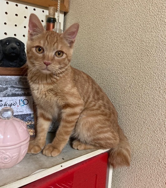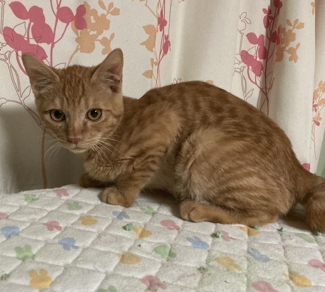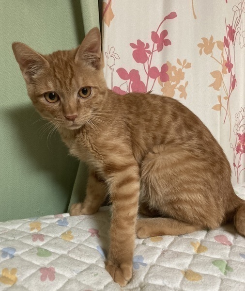 | 特徴(性格など) | 【仮名】ふぶきくん 【性格】かわいい茶トラなふぶきくん♪ しかしながら中々のビビリくんなんです(泣) 甘えたい気持ちはあるようなのですが 怖いのが勝っちゃって勇気が出ないんです(泣) おもちゃ遊びは好きみたいなので 皆さんの愛情でベタ馴れの後押しお願いします! まふゆくんと兄弟でいつもくっついているので出来れば一緒がいいなぁ~と思います。 ※1ピキ譲渡要相談 |