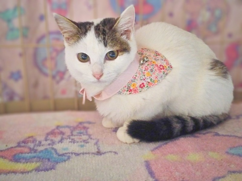 | 特徴(性格など) | 白キジ柄の女の子です。 大人しく甘えたさんです。 同じ環境で育っていても皆んなそれぞれ個性があり とても可愛いです。 多数の猫ちゃんを保護していますので是非見に来てください。 |